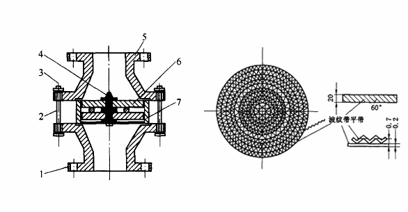 1、緊固螺柱;2、防鳥(niǎo)孔罩;3、防雨防塵帽;4、波紋阻火板;5、固定板;6、連接法蘭;7、閥體;8、緊固件;