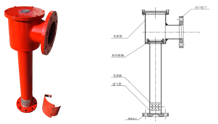 PCL型空氣泡沫發(fā)生器垂直安裝固定在油罐頂壁上,是產(chǎn)生和噴射空氣泡沫的滅火配件。